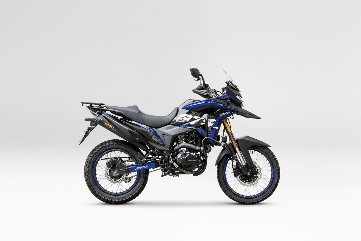 La Cross 6 GTS est une moto 200CC conçue pour les amateurs de sensations et d’aventure. Son moteur fiable, associé à une boîte 5 vitesses, offre une conduite dynamique et maîtrisée aussi bien sur route que sur les chemins difficiles.